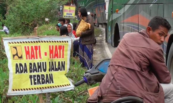Luasnya badan jalan yang terban membuat petugas terpaksa menutup total jalan. Akibat penutupan jalan, terjadi antrean panjang ratusan kendaraan dari Padang menuju Medan maupun sebaliknya.